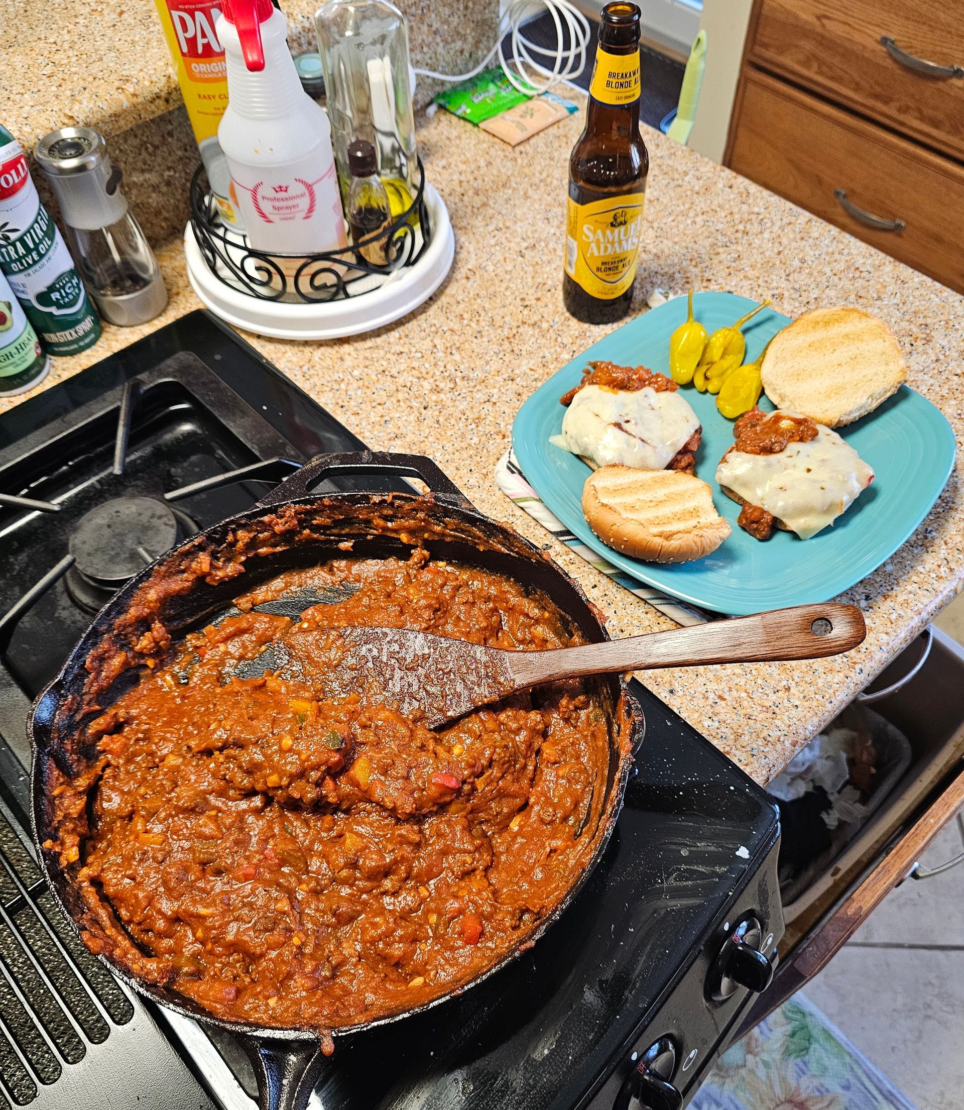After letting everything simmer together for about 10 minutes I decided to try a small bowl for quality control and assurance. I was thinking I should put some Heavy Cream in the soup, but not having any on hand, I decided a dollop of Sour Cream on the served bowl would do the trick just fine. Also, I did find the spice level lacking my preference, so I also added a few drops of Louisiana Hot Sauce for good measure, paired this with a nice roasy Oktoberfest and had a Fan-Tastic luch.