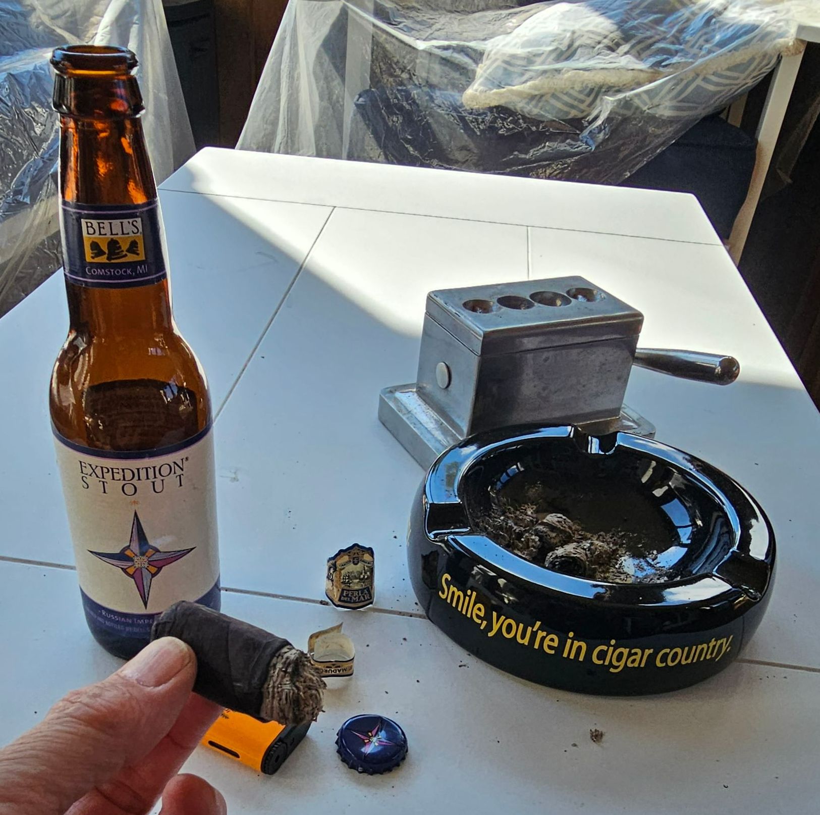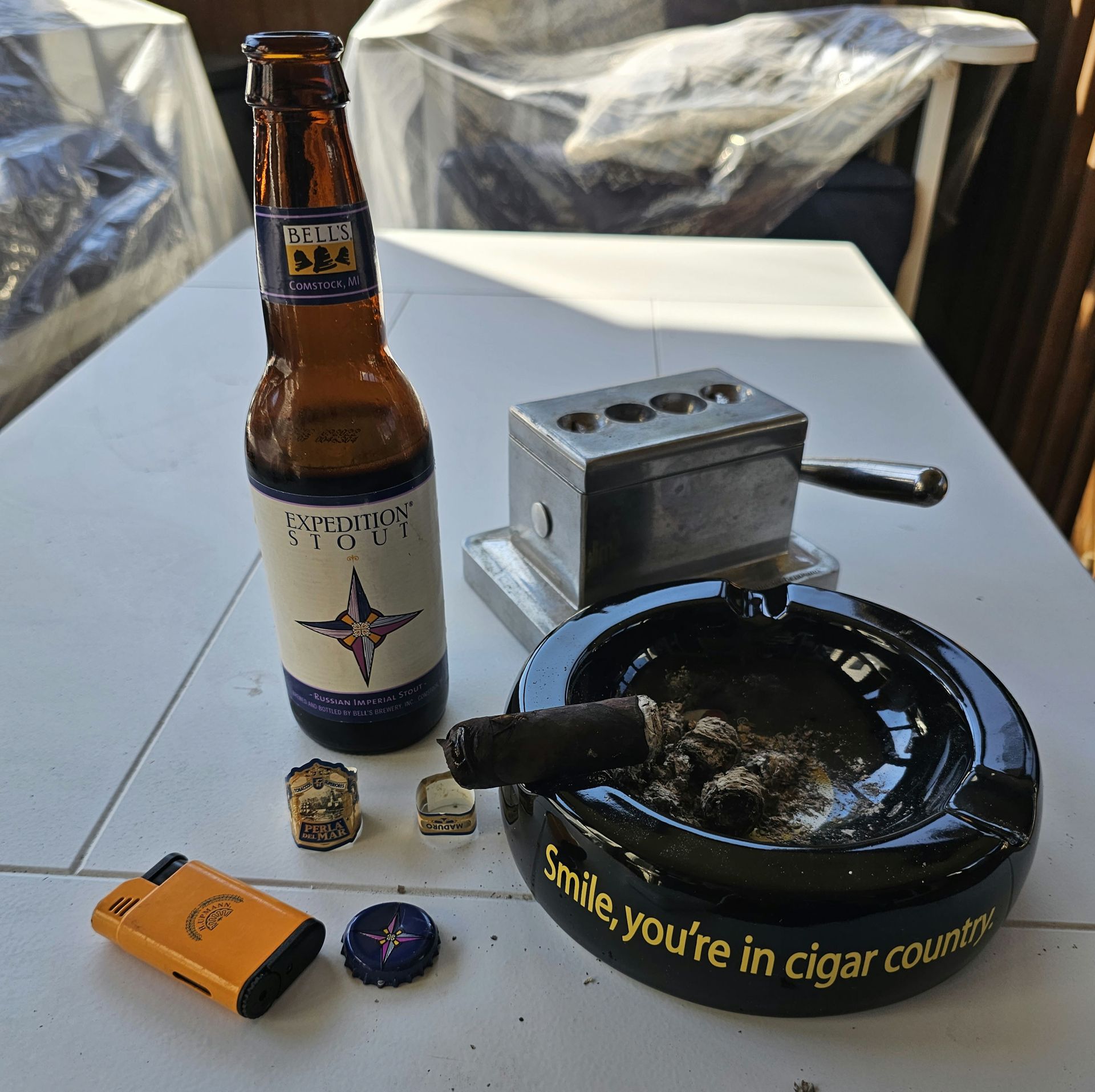I will tell you, for me, most cigars don't get really good until there's about 2 or 2.5 inches left, the Last Third, and this PDM was no different and not a let down. It was one of those cigars I wanted to smoke until I just couldn't hold on to it any longer. The burn was steady, even, and slow, but it never went out. For this last Third I grabbed the complex chocolate, dark fruit, and roasted aromas found in Bell's Expedition Stout (Imperial Russian Stout), and again, what a genius choice, this beer was exactly what a strong Maduro session should end with. I am not typically a Stout guy, but this was by far one of the best cigar/beer pairing I ever thought to try.