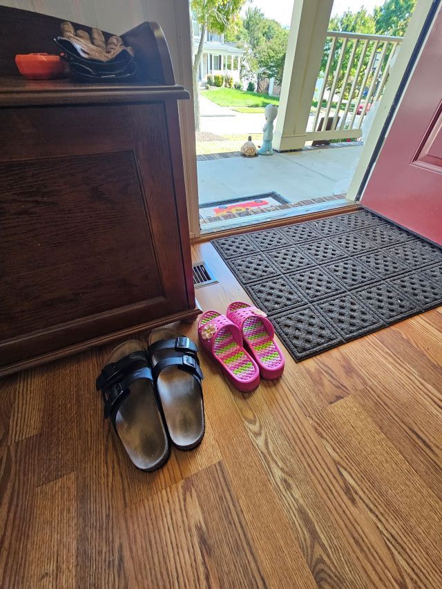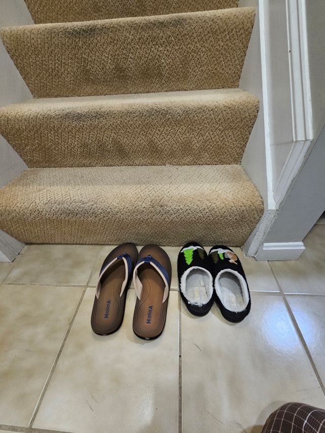 How does one go about fetching, moving, transfer their slippers if they can't simply take off the outdoor shoes and travers the indoors with stocking feet? The answer to this question becomes painfully obvious as you look around Orbit City and see "His" and "Her" outdoor slippers at every door. Great now I can drop my indoor slippers and slide into a pair of outdoor slippers whenever I am just stepping out and around OC - just remember to come back in through the same door, do not exit the garage and try and come back in the front door, you just left your indoor slippers at the garage exit.