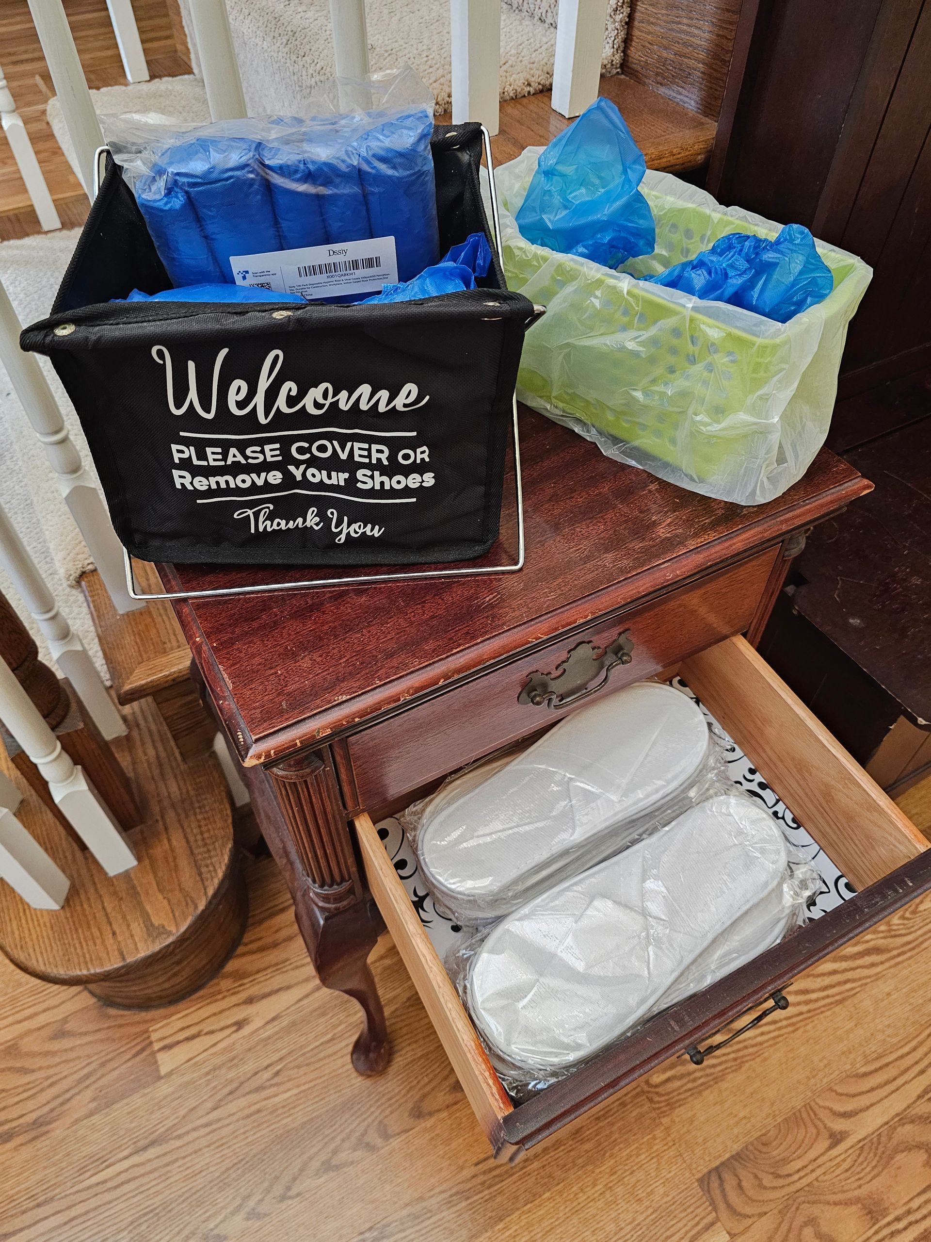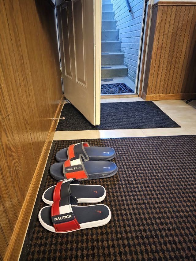 We've got shelves of slippers and heck even one of our regular visitors had some Amazon slippers delivered to Orbit City so he would have his own slippers whenever he stops by, while another brought a pair to keep here for his visits.