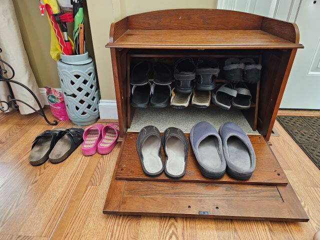 So now it's been nearly three years, we have slippers for slippers, inside slippers and outside slippers, slippers for gardening, and, well, quite frankly, I am not 100% sure how many slippers I am supposed to have at this point.